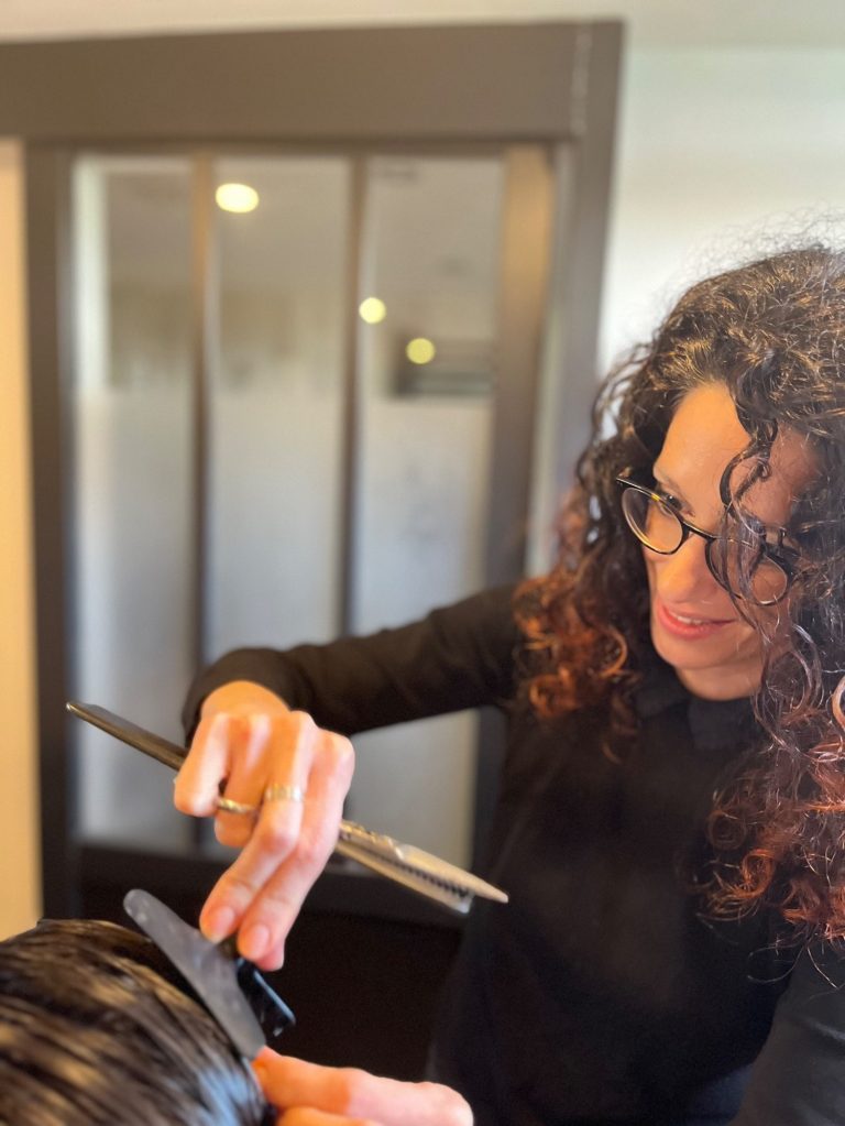 Coupe à sec sur cheveux bouclés avec shampoing, soin et coiffage. Pour cette prestation avoir les cheveux au naturel sans produit coiffant, ni attachés pour voir votre boucle retomber est important !